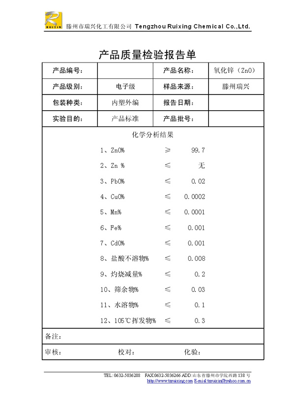 瑞興化工有限公司是生產(chǎn)氧化鋅的重點(diǎn)企業(yè),于2008年通過(guò)ISO9001:2008質(zhì)量管理體系認(rèn)證?!叭鹋d”牌氧化鋅在國(guó)內(nèi)擁有較大穩(wěn)定的市場(chǎng),并遠(yuǎn)銷(xiāo)東南亞、中東、中南美等國(guó)家和地區(qū),在國(guó)內(nèi)外享有較高聲譽(yù)。